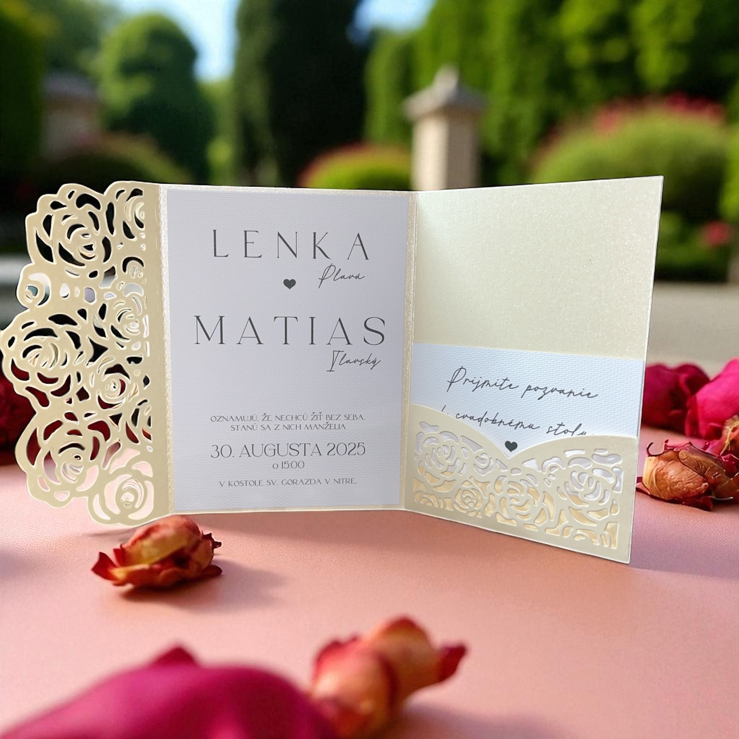 Ozdobné karty pripravujem v rôznych formátoch a dizajnoch. Rada ich prispôsobím svadobnému oznámeniu, menovkám alebo menu kartám, aby všetko krásne ladilo.